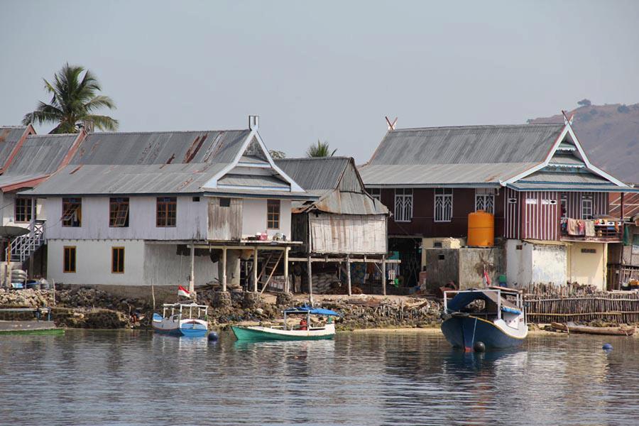 Photos 5A, 5B and 5C Ngada houses: there are a lot of different roof shapes and the houses have a single-pitch bamboo roof at the veranda. 5A in Boradho, 5B in Luba and 5C a more contemporary house in Watujajii
